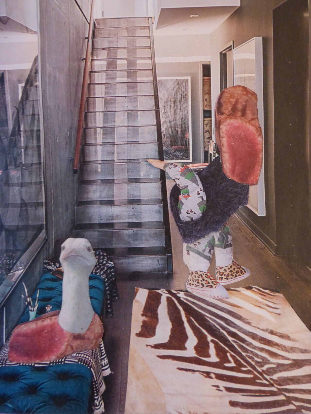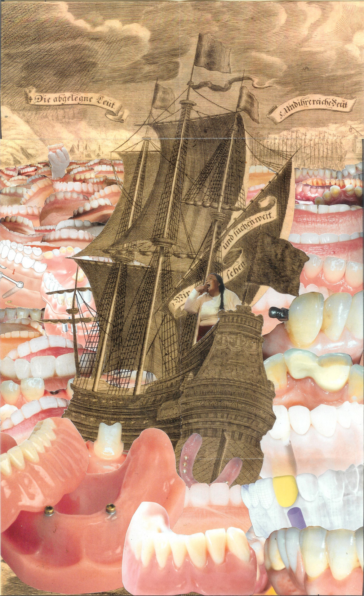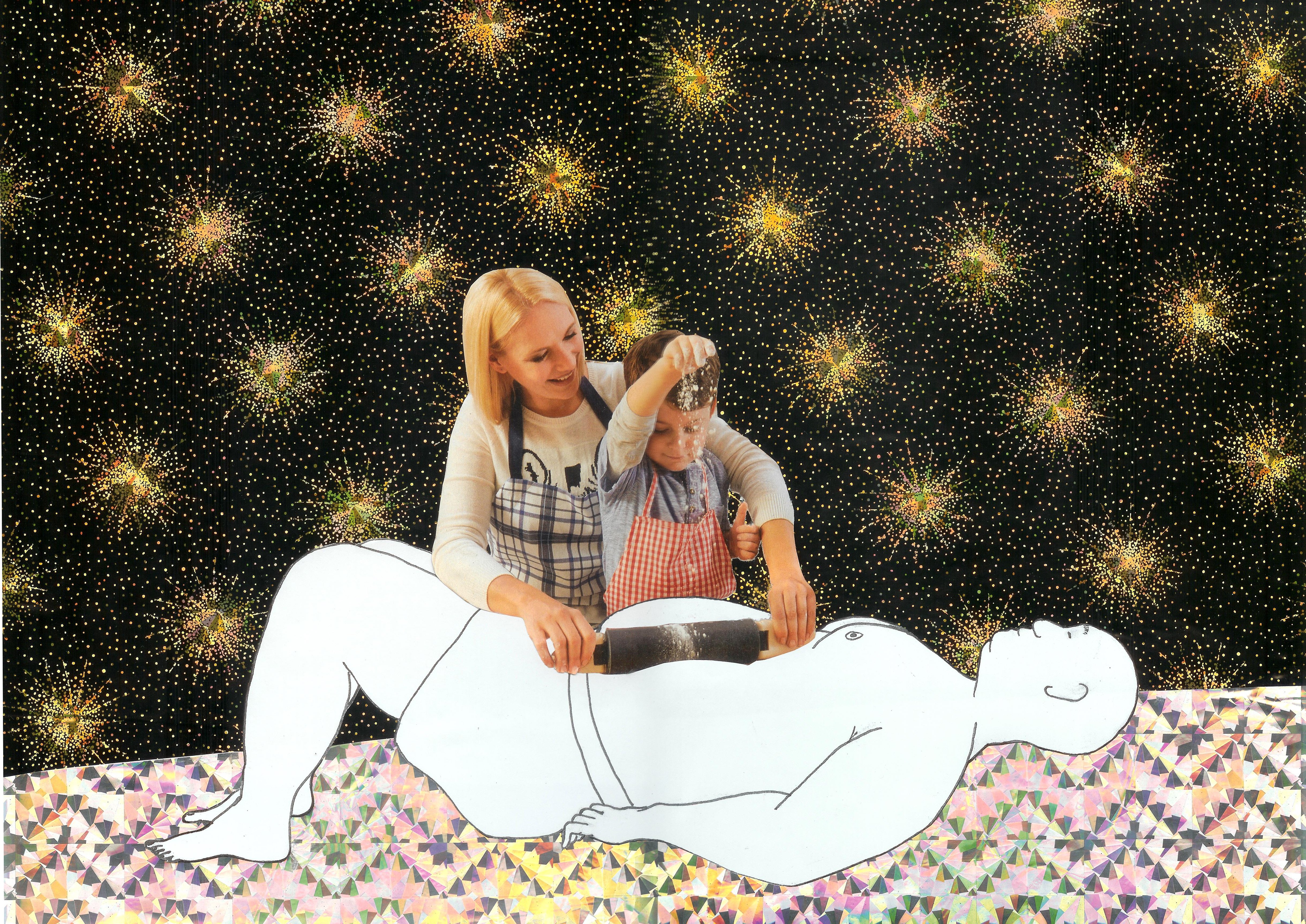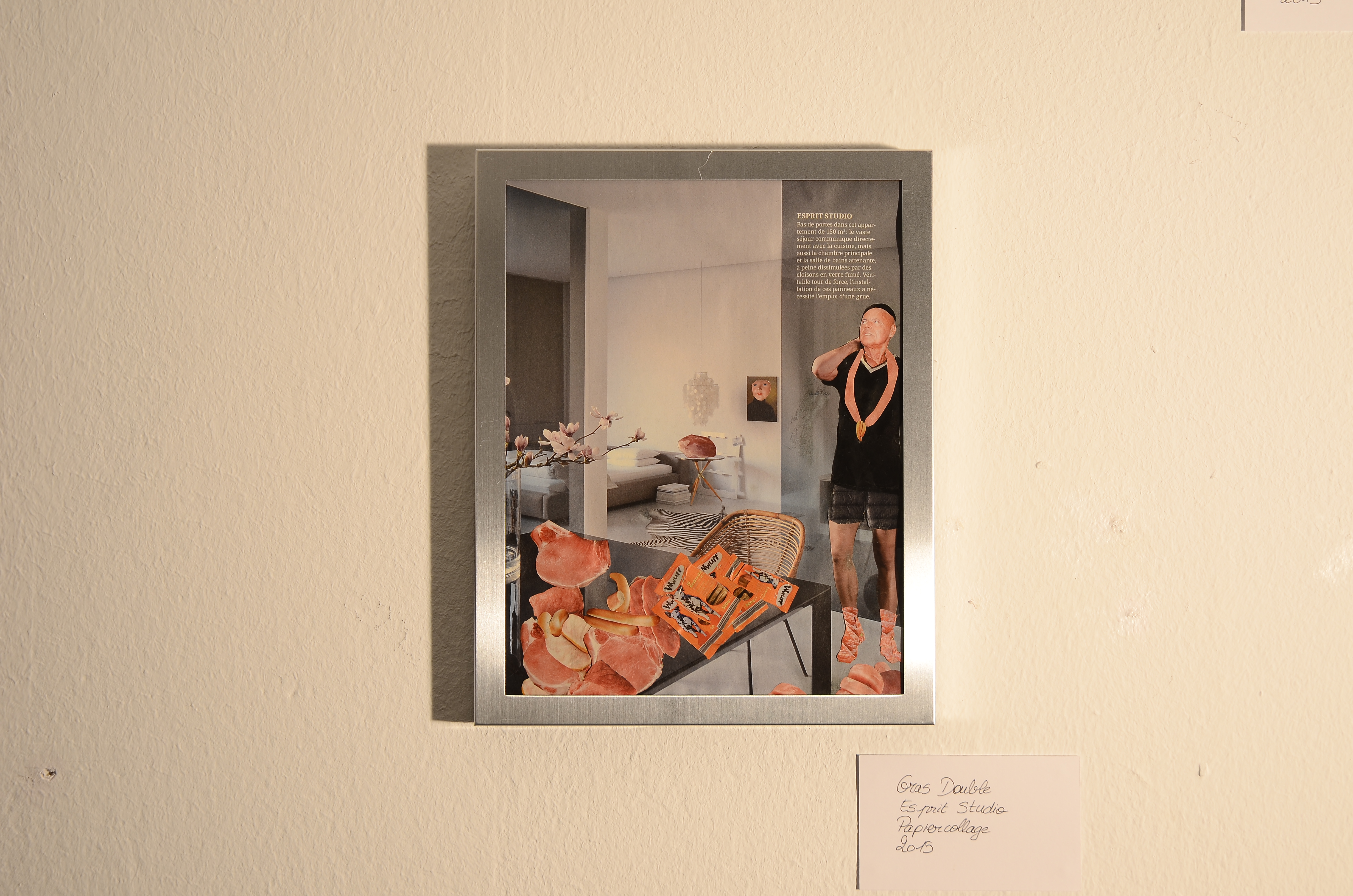 Avec Gras-Double (duo formé avec mon compagnon Jean-Louis Bonne), nous développons une lecture satyrique et sensible du monde. Notre médium de prédilection commun est le collage, associé souvent au dessin et à l’installation, travaillés in situ. Avec le projet Lecker!, nous avons créé un univers émaillé de ce que nous vivions dans une petite ville portuaire d’Allemagne du nord, où nous habitions alors.
